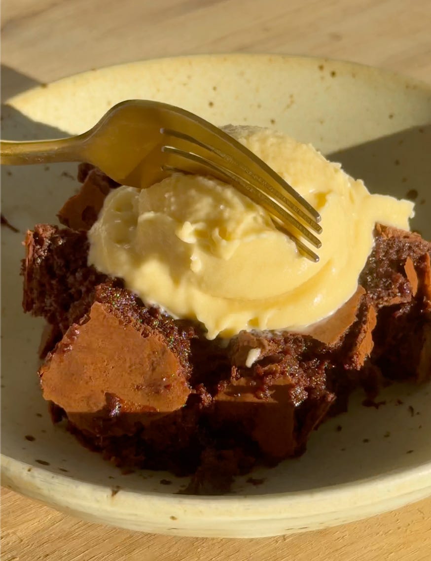 Remove from the oven and allow the brownie pudding to set slightly before serving. It’s perfect topped with ice cream.
